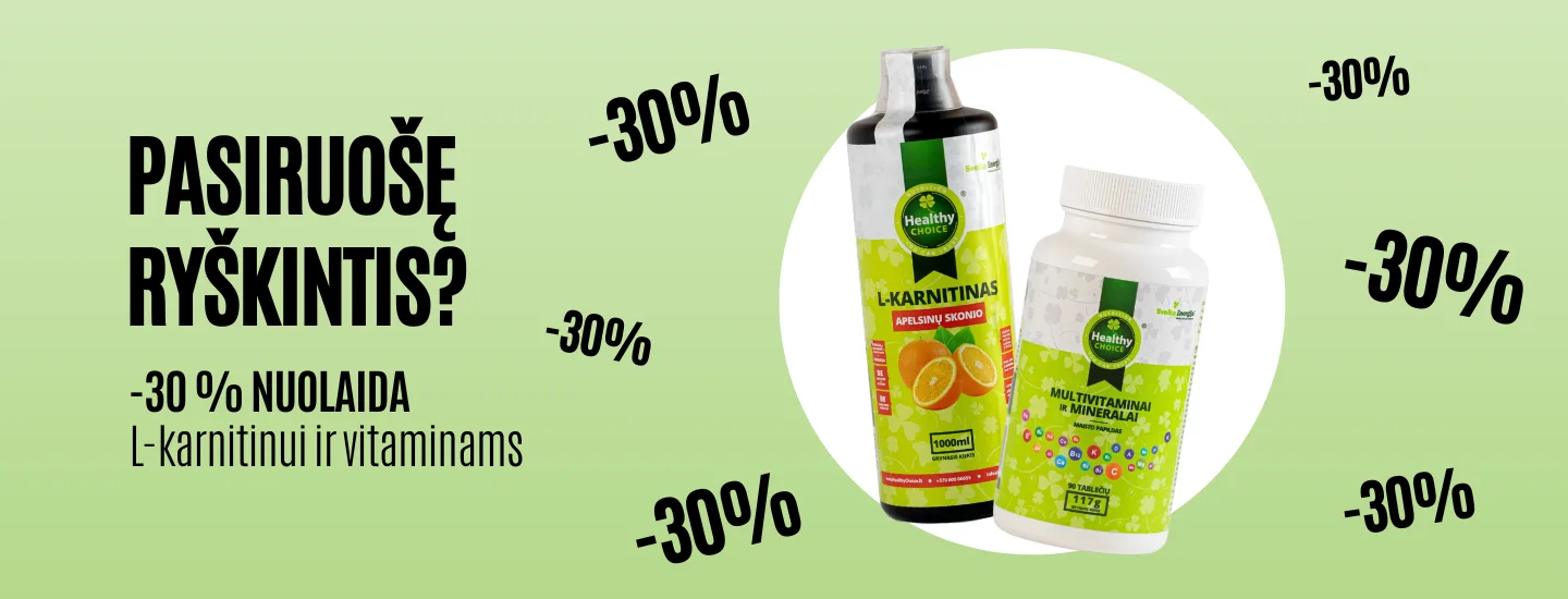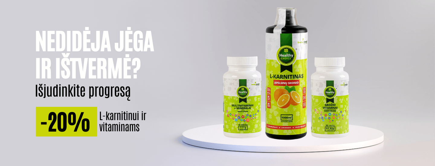 100% išrūgų baltymai šokolado skonio, 1kg L-Karnitinas apelsinų skonio, 1000ml „Healthy Choice” plaktuvė/gertuvė, 700ml